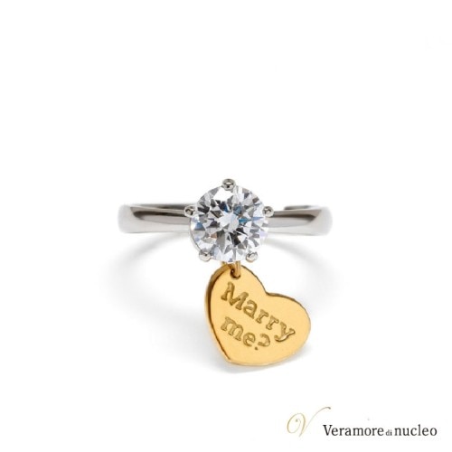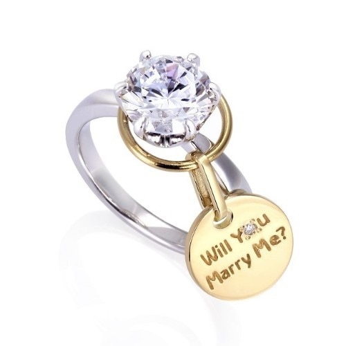 プロポーズにアイテムは必須!センターには大きなキュービックジルコニアが留められ、「will you marry me?」の文字が書かれたプレートが!